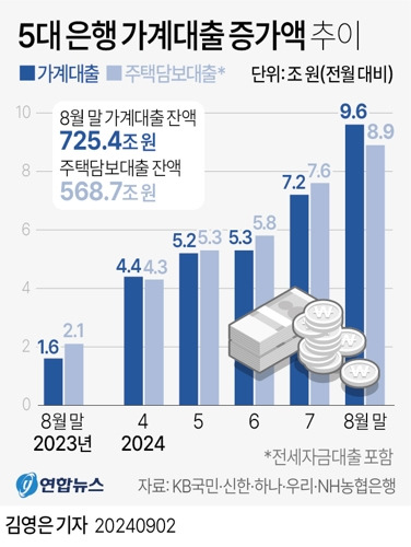 지난 8월 말 가계대출 잔액은 725조 3천642억 원,